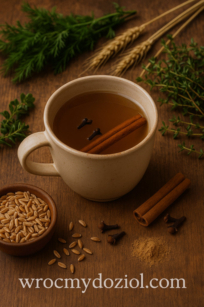Ten napój orkiszu z przyprawami rozgrzewa organizm, wzmacnia żołądek i poprawia nastrój.